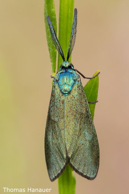 Das Ampfer-Grünwidderchen ist das bei uns am häufigsten vorkommende Grünwidderchen und wird deshalb auch Gemeines Grünwidderchen genannt. Die Grünwidderchen (Procridinae) gehören zur Schmetterlings-Familie der Widderchen oder auch Blutströpfchen (Zygaenidae).